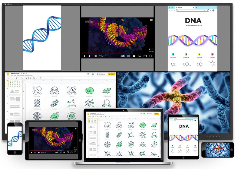 Ученики и преподаватели могут легко демонстрировать контент со своих устройств через AirPlay, Miracast или Chromecast. Преподаватели управляют процессом обучения, организуют совместную работу и получают обратную связь в реальном времени.