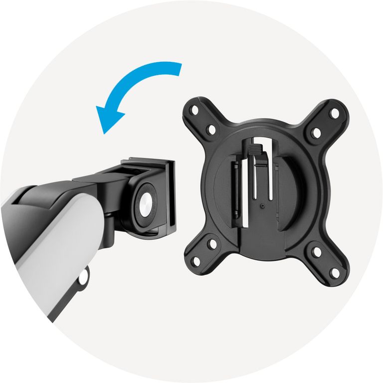 Для монитора 17"-32", механизм с возвратной пружиной и газовым амортизатором, VESA 100x100 мм, до 10 кг, наклон +45°/-45°, поворот +90°/-90°, вращение +90°/-90°, USB Type-C разветвитель, белый.