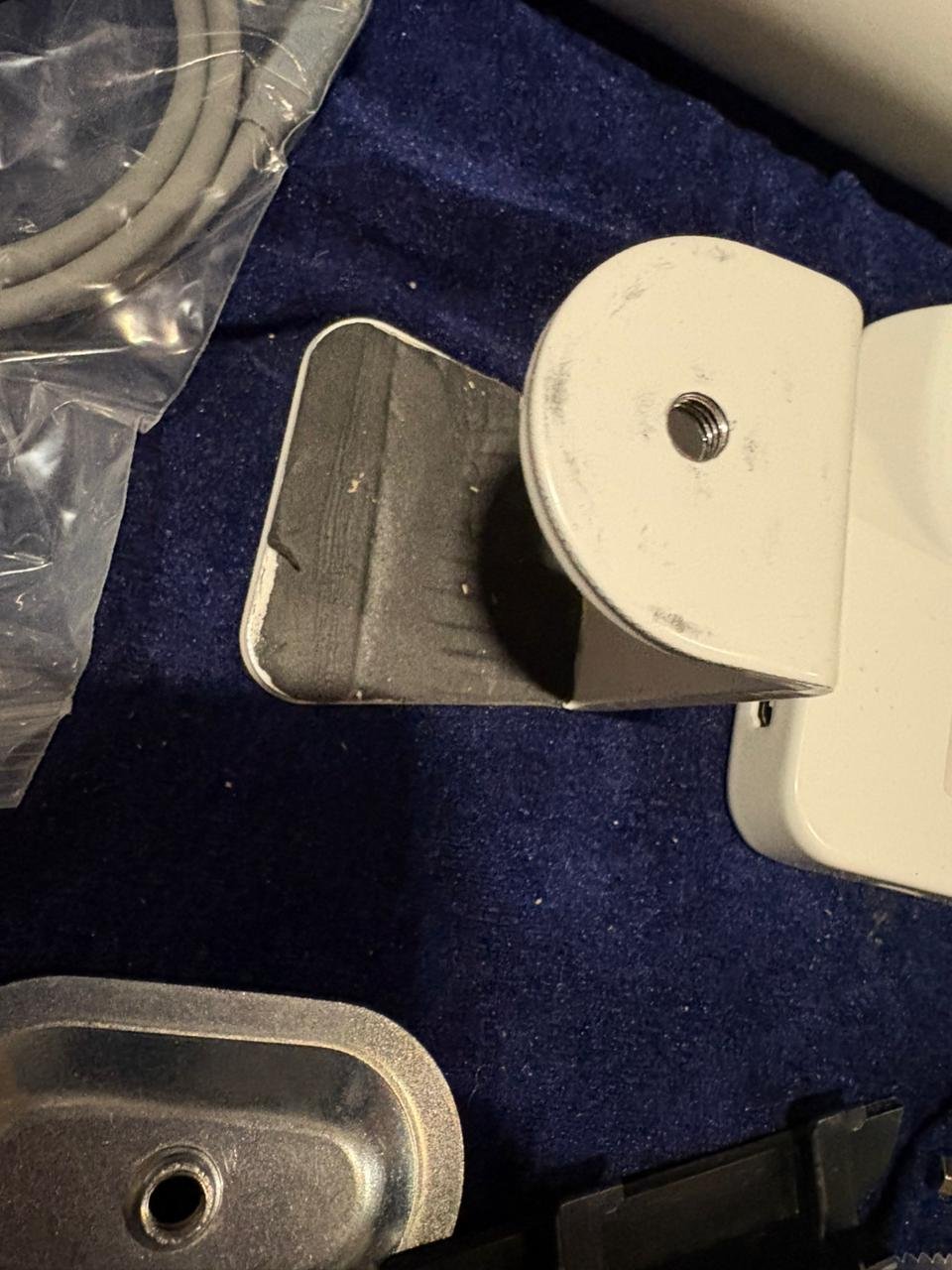 Упаковка вскрывалась, мятая , вся в скотче. Оборудование использовалось. На лаковой поверхности есть потертости, царапины.