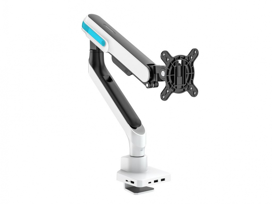 Для монитора 17"-32", механизм с возвратной пружиной и газовым амортизатором, VESA 100x100 мм, до 10 кг, наклон +45°/-45°, поворот +90°/-90°, вращение +90°/-90°, USB Type-C разветвитель, белый.