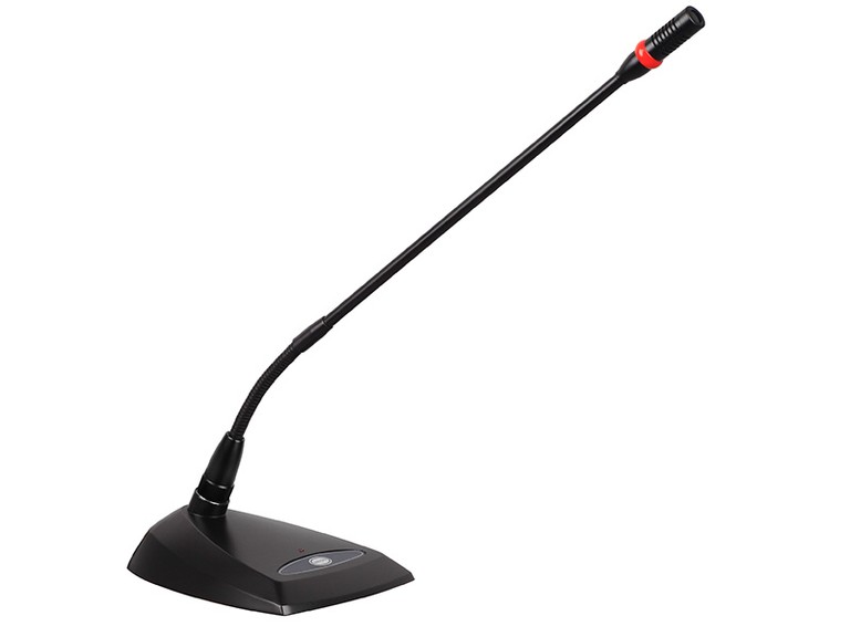 HTDZ HT-809 – конденсаторный XLR-микрофон на «гусиной шее» для проведения пресс-конференций, деловых совещаний, интервью, презентаций и выступлений на трибунах от крупнейшего производителя конференционных и конгресс-систем в Юго-Восточной Азии. Микрофон соответствует всем стандартам, принятым в индустрии, в том числе имеет гиперкардиодиную направленность, кнопку MUTE, индикацию на пульте и самом микрофоне, а также оснащается XLR-кабелем 8м и блоком фантомного питания.