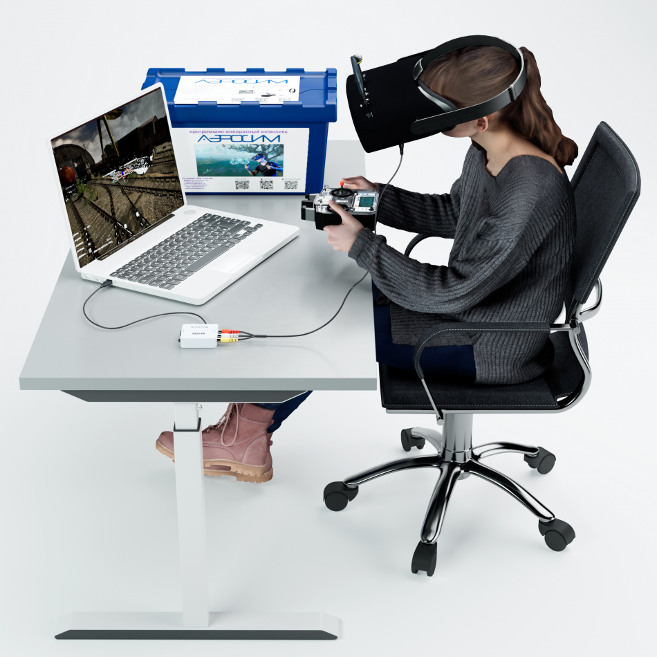 ПАК содержит в комплекте все необходимые компоненты для безопасного и быстрого старта обучения пилотированию БПЛА в ручном режиме. В комплекте идет пульт и шлем, которые можно также использовать в дальнейшем для пилотирования реальными БПЛА в режиме FPV (First Person View, «Вид от первого лица»). Через специальный конвертер возможно вывести изображение с экрана ноутбука на шлем.