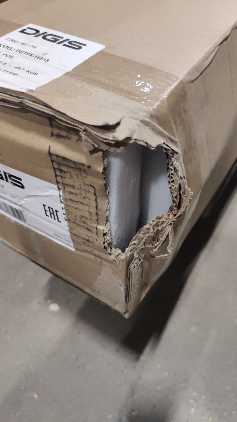 Упаковка вскрывалась, для проверки целостности, сильно повреждена. Оборудование не использовалось.