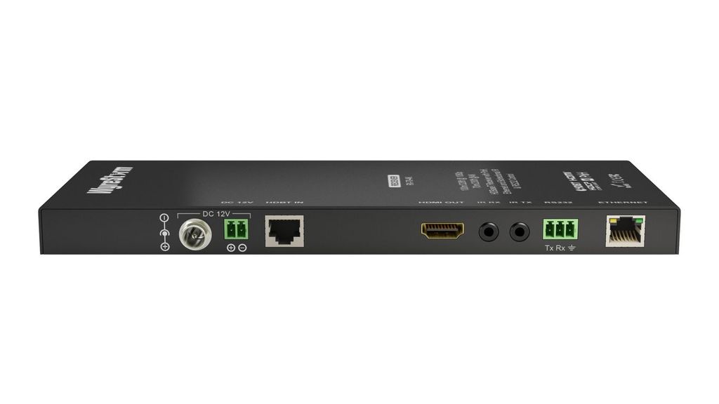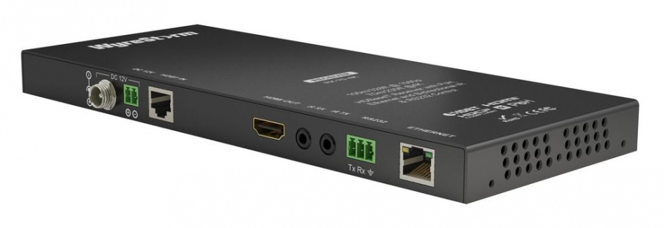 Приемник HDBaseT сигнала с поддержкой 4К. Позволяет принимать 4K/HD видео, HD аудио, принимать и передавать сигналы управления ИК и RS-232, Ethernet и питание.