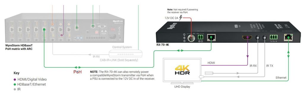 RX-70-4K, HDBaseT приемник HDMI по витой паре до 100 м (FullHD), до 70 м (4K), двунаправленный ИК, RS-232, Ethernet, PoH