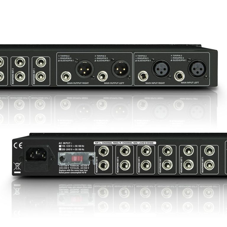 Усилитель для наушников LD Systems HPA 6 – мощный и гибкий усилитель высотой 1U для установки в 19“ рэковую стойку с 6 полностью независимыми каналами и широкими возможностями для решения широкого круга задач, в том числе для профессионального мониторинга аудио. Каждый канал оснащен выходом 6,3 мм TRS и регулятором громкости на передней панели, клавишей переключения моно/стерео, клавишей отключения на левом или правом канале и 6,3 мм входом TRS AUX для микширования с дополнительным источником звука. Четырехсегментная светодиодная индикация позволяет контролировать уровень для каждого канала, а два 6,3 мм TRS выхода позволяют подключить суммарно до 18 наушников. Основная секция HPA 6 оснащена общим регулятором уровня с восьмисегментным светодиодным индикатором и 6.3 мм TRS входом для микширования дополнительного источника звука для всех каналов. На задней панели расположены основные стереовходы с симметричными разъемами XLR и 6,3 мм TRS, а также стереовыходы для последовательного подключения нескольких устройств.